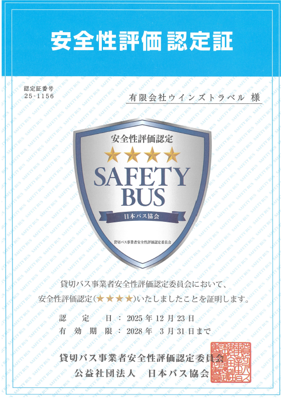 この度、当社ウインズトラベルは公益社団法人日本バス協会が実施する