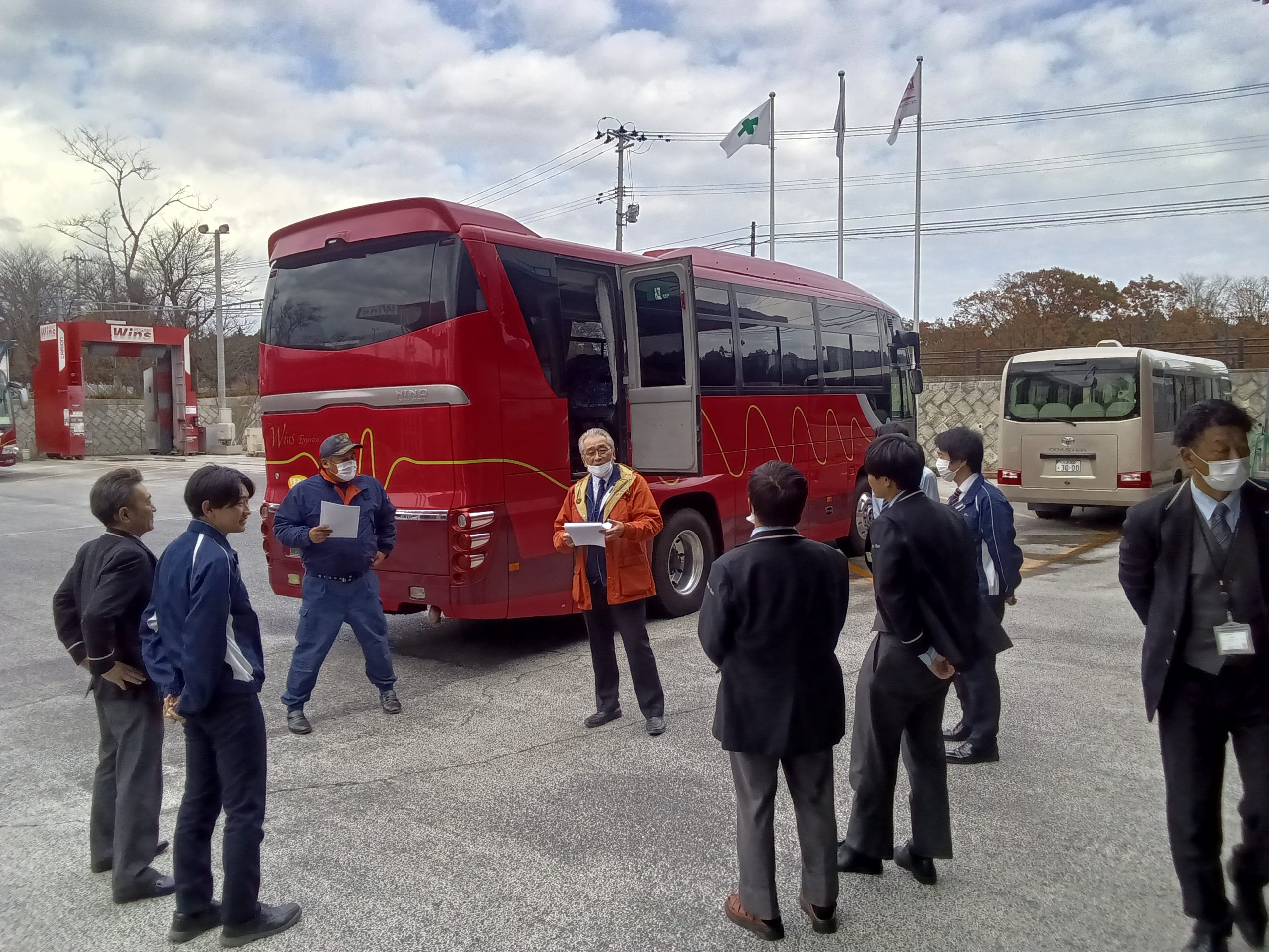 通報訓練に続いて、バスからの脱出訓練を実施しました。
