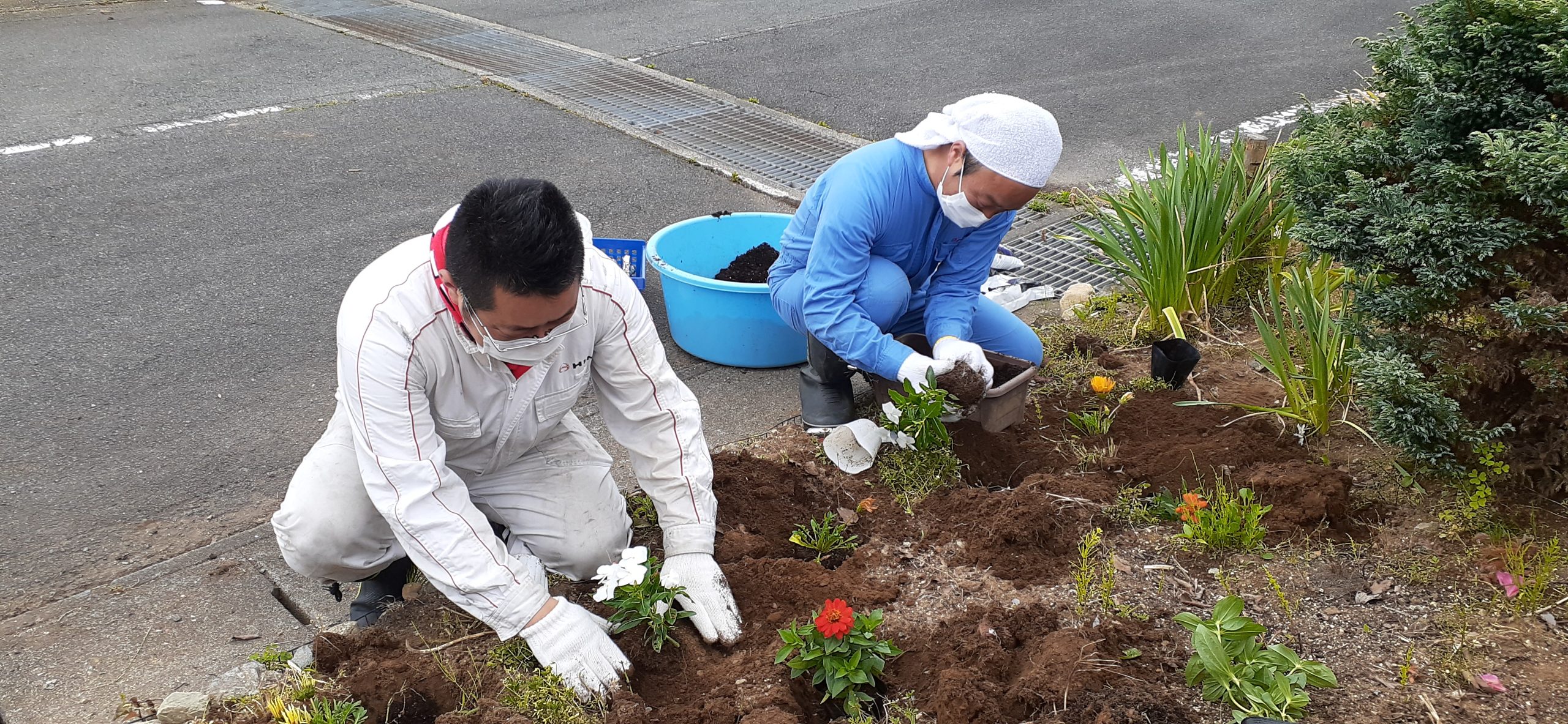 ゴミ拾いが終わり、花🌷を植えます 土いじりは、楽しいです