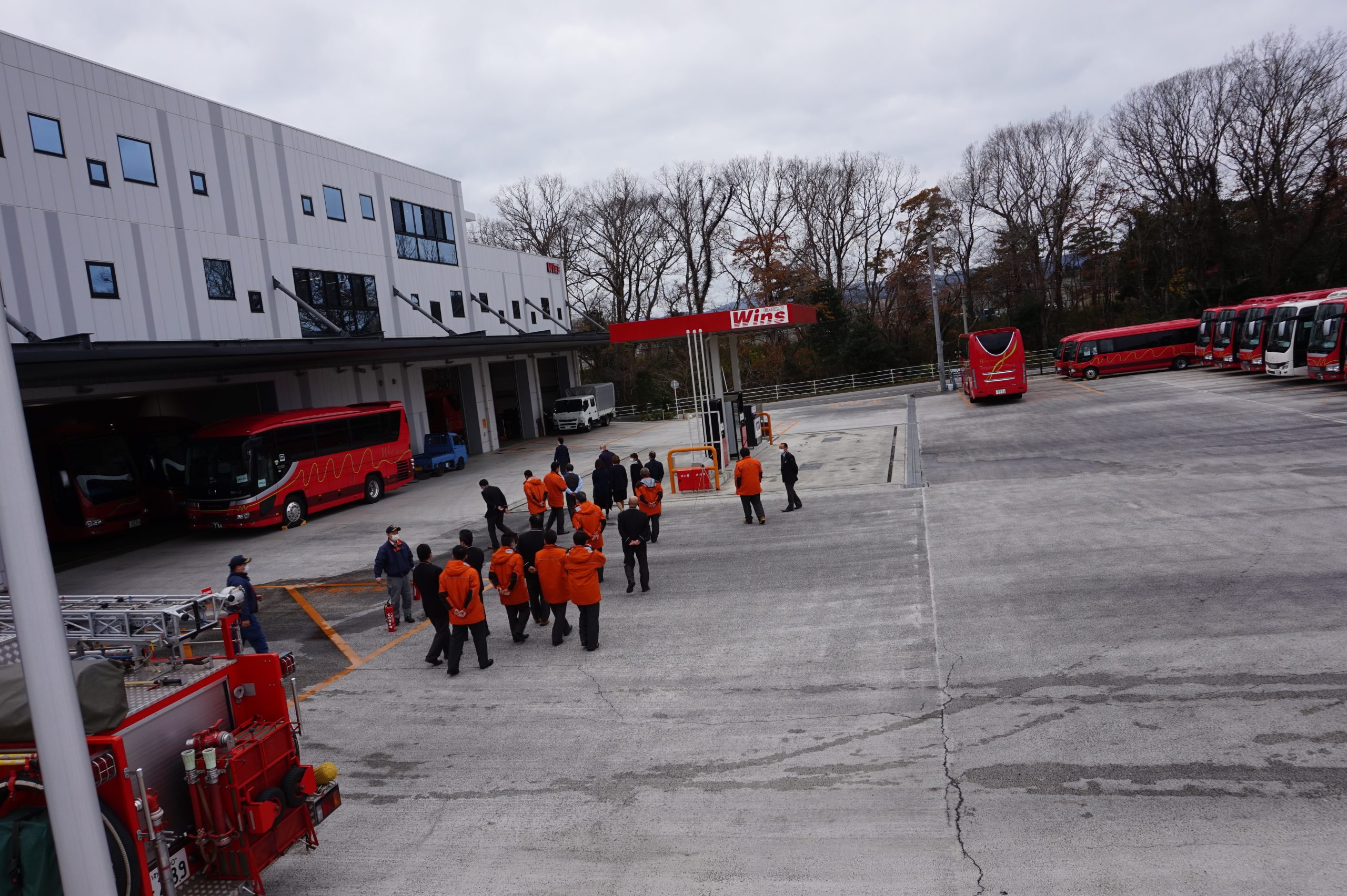 社屋から安全な場所へ避難します